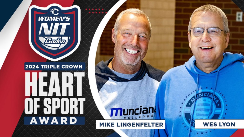 The TC NIT Heart of Sport Award in volleyball is presented by Triple Crown Sports in honor of coaches and program directors who go the extra mile in developing players, building character and supporting the priorities of hard work and compassion while demonstrating the highest level of integrity to the sport, the players, the families and competitors.